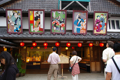 赤福の茶店の向かい側に、小さな路地がある。おかげ横丁というのだそうだ。赤福餅を食った後でそこをぶらついた。奥の突き当りには、見世物小屋のカリカチュアのようなものが構えている。ただし正面だけで、舞台や座席の部分はない。昨年訪れた明治村では、本物の芝居小屋があったものだが、ここでは顔の部分を見せるだけで済ませているわけだ。